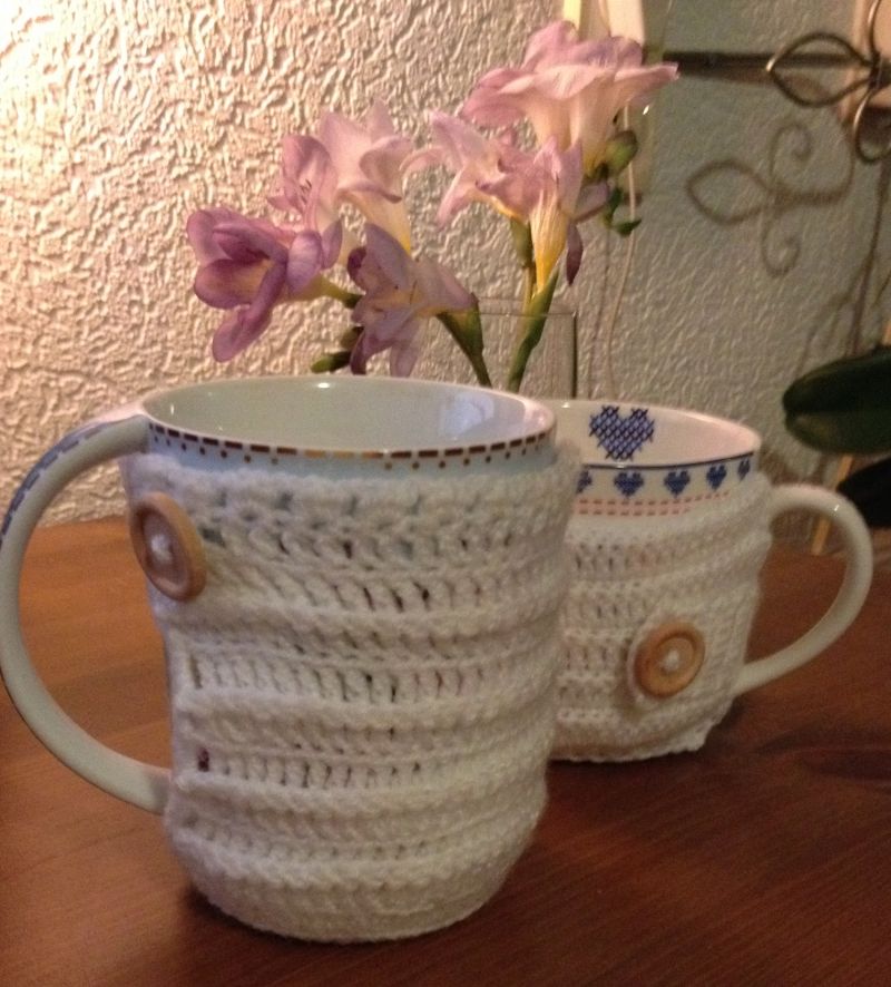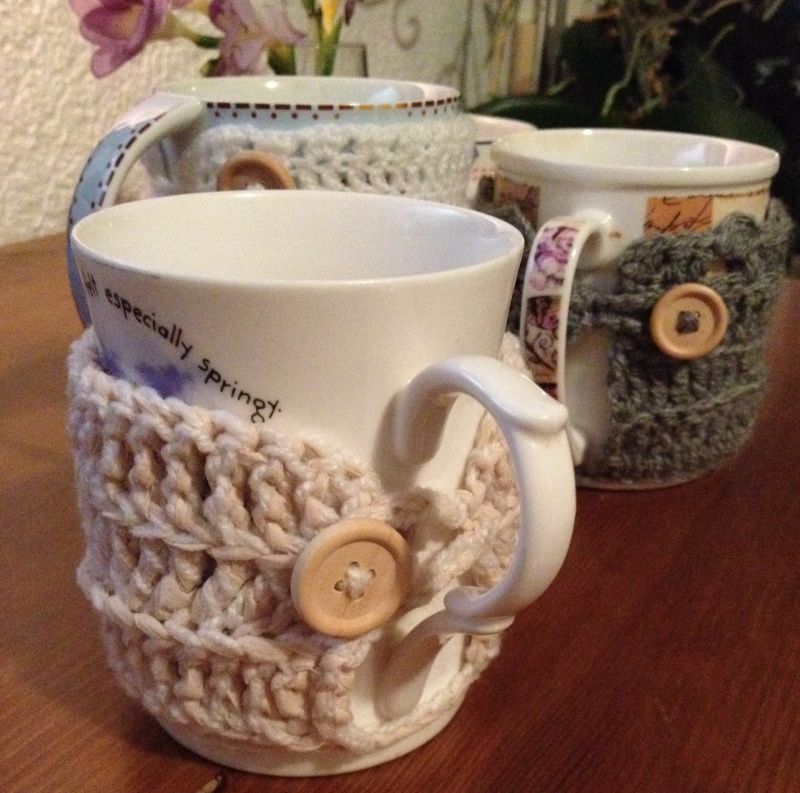 Deze gehaakte bekerwarmers zien er heel gezellig en maken de winterlook in huis helemaal af!
